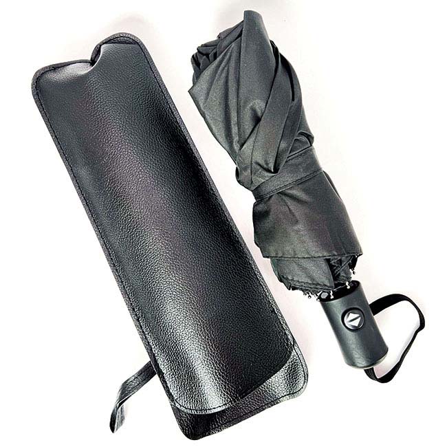 Paraguas Tahoe l Juego de paraguas y estuche. l Paraguas de 8 paneles foldable l Elegante estuche de curpiel con correa lateral para sujetar. l Colores: Negro.