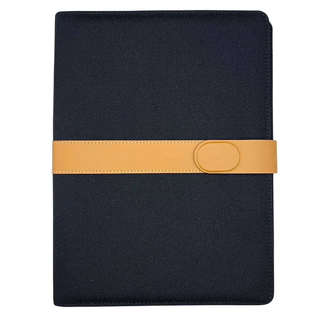 Porta Documentos Tokio l Incluye block de hojas rayadas. l Interior con portabolígrafos y compartimentos organizadores l Presiila en cierre magnético l Colores: Negro. Material: PET reciclado Medida: 31 x 23 cm Impresión: Serigrafía Área de Impresión: 10 x 4 cm