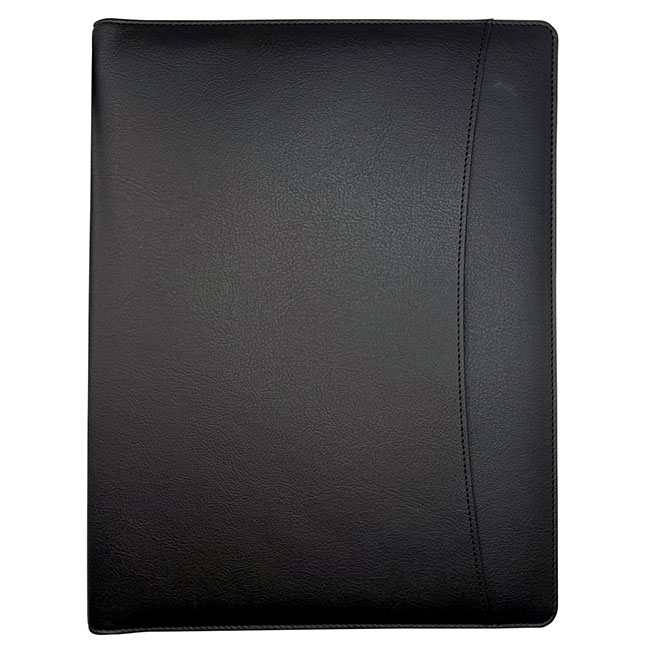 Porta Documentos Tulsa l Incluye block de hojas rayadas. l Interior con portabolígrafos y compartimentos organizadores l Apertura adicional en cubierta para documentos. l Colores: Negro. Material: Curpiel Medida: 32 x 24 cm. Impresión: Tampografía y Grabado Láser Área de Impresión: 10 x 4 cm.
