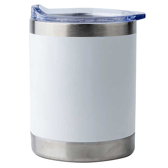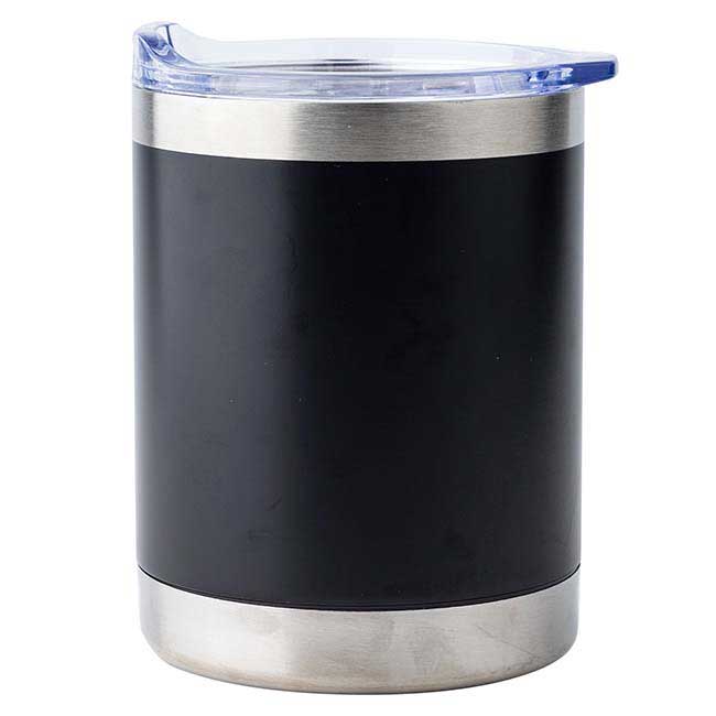 Capacidad: 350 ml. Sistema de doble pared al vacío. Tapa de plástico con cierre deslizable. Colores: Blanco y Negro.