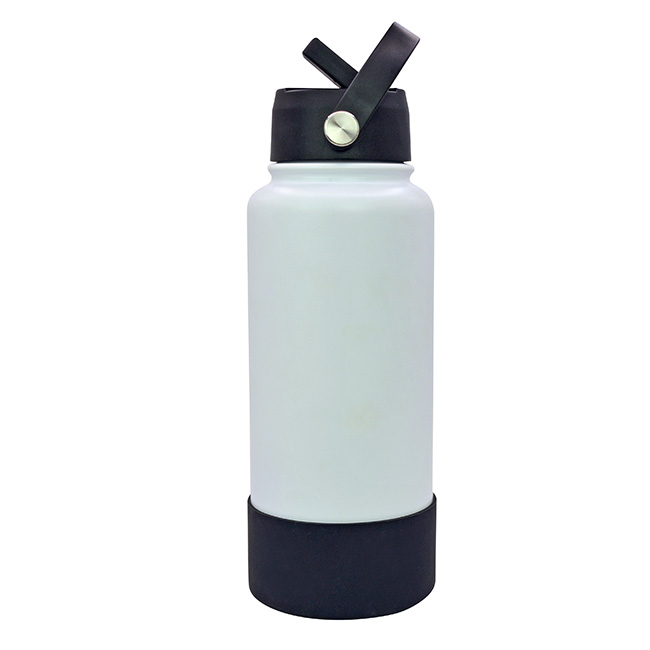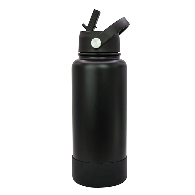 Termo Sabino l Capacidad: 1 lt. l Sistema de doble pared al vacío. l Tapa en rosca con asa rotativa, boquilla deslizable y popote. l Funda protectora antiderrapente en base l Colores: Blanco y Negro