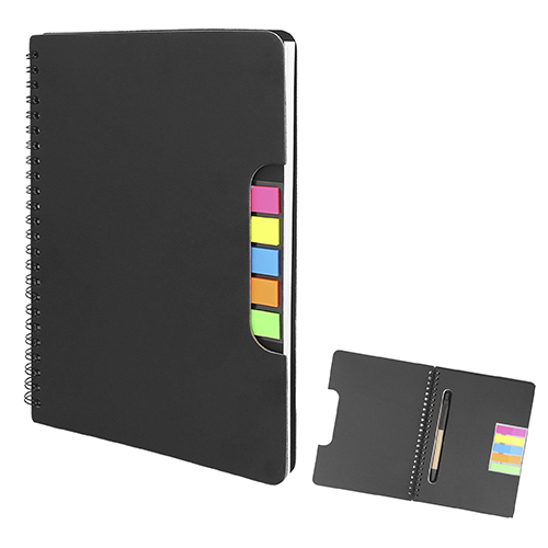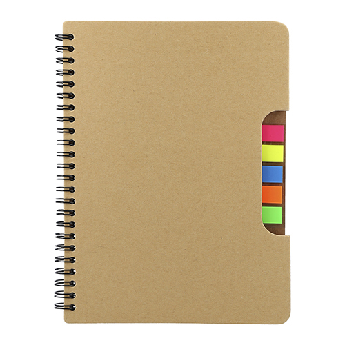 Libreta ecologica con 5 tiras de banderas adheribles y boligrafo, cuenta con 80 hojas rayadas.
