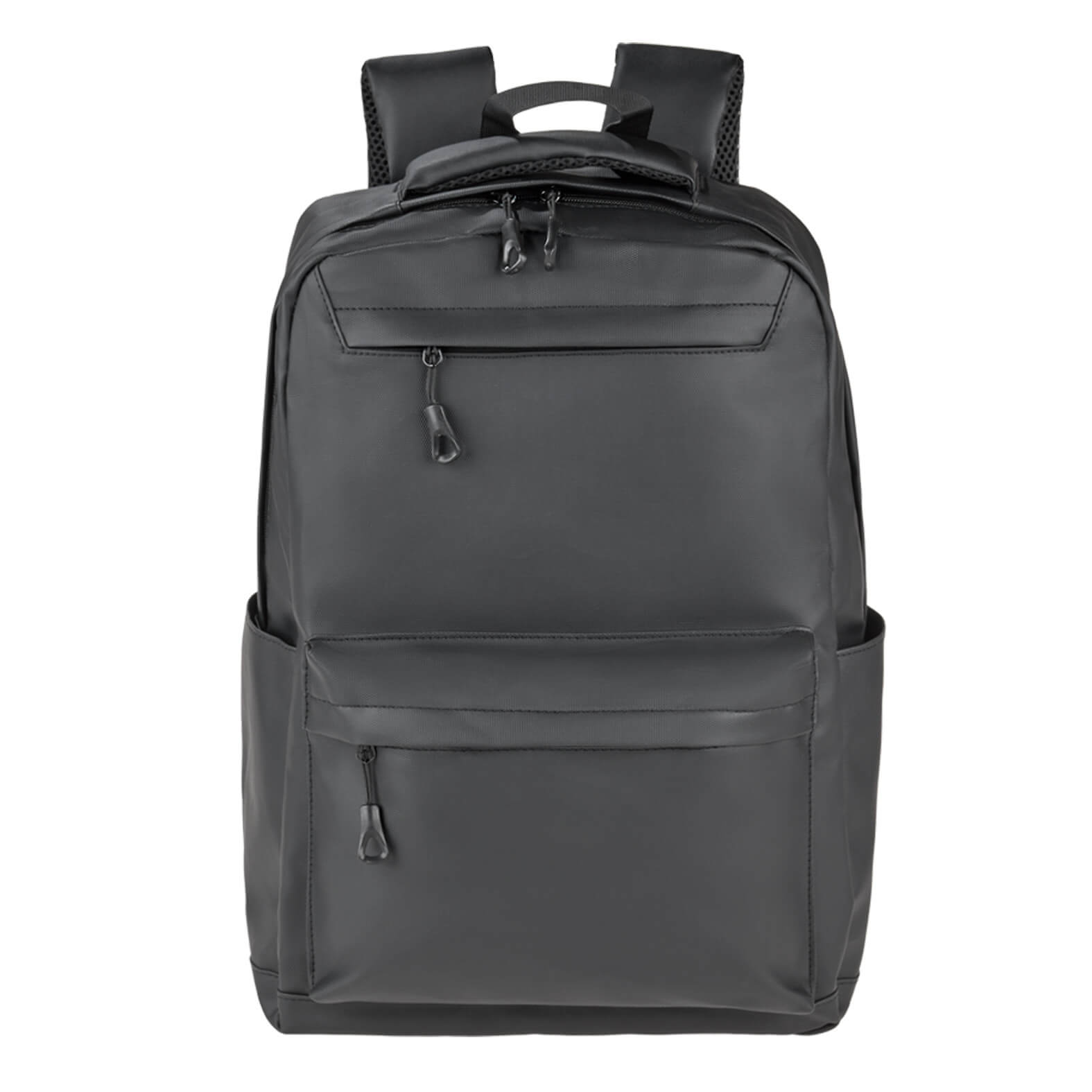 Mochila con compartimento principal con porta laptop de 17", dos bolsas frontales con cierre, dos bolsas laterales, banda carry-on y asa superior.