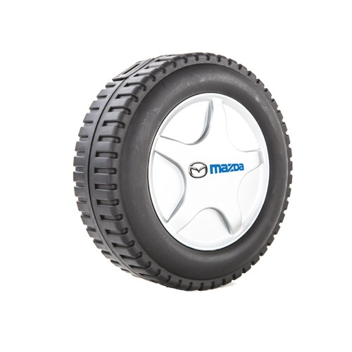Set de herramientas en forma de neumatico. Contiene: 2 pinzas, 6 desarmadores, 1 destornillador, 4 dados y 10 puntas.
