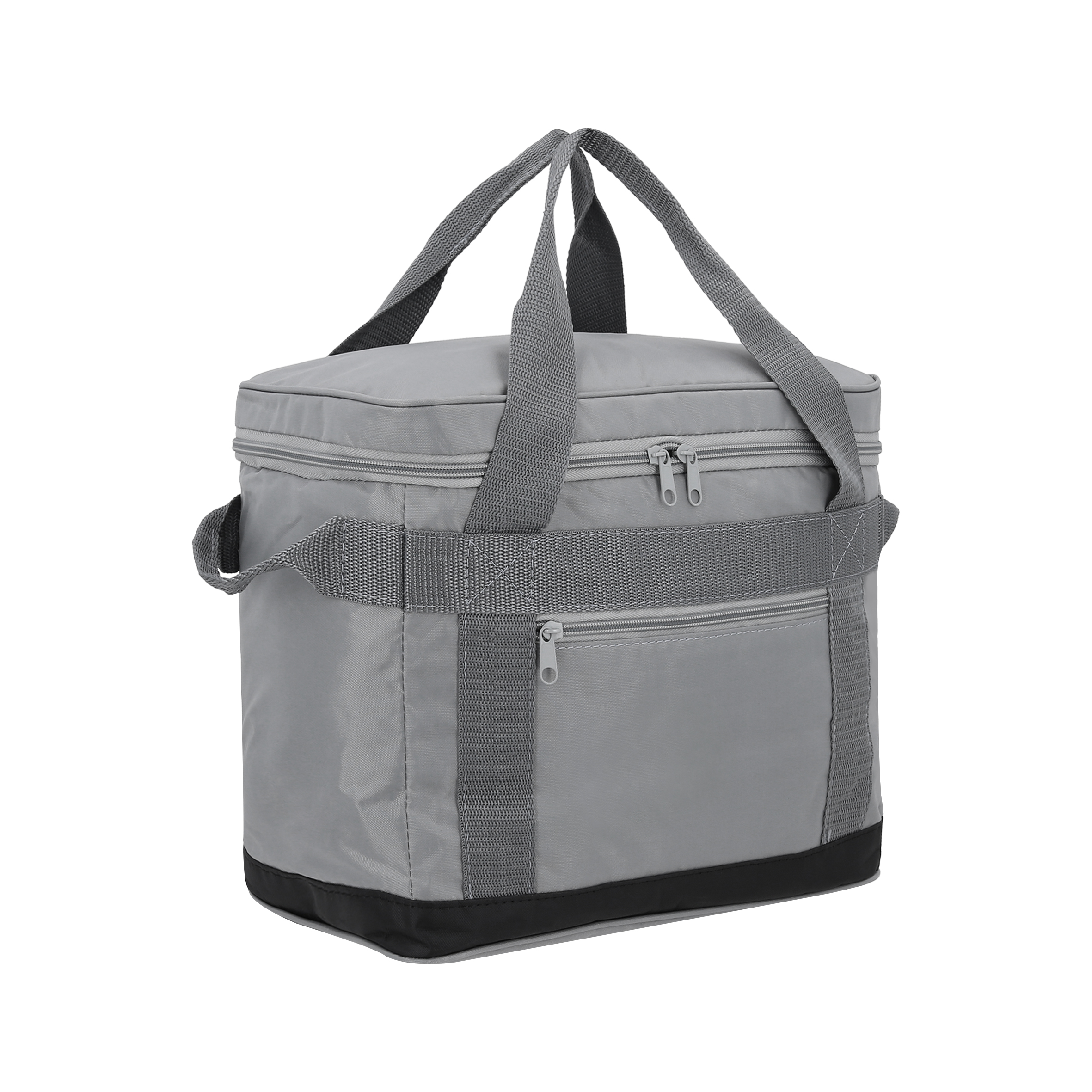 Hielera rectangular con cierre, doble bolsa en la tapa, 1 bolsa frontal y doble asa.
