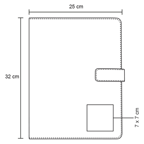 Carpeta de curpiel tamaño carta con block de rayas, compartimiento de tarjetas, porta bolígrafo y cierre magnético.