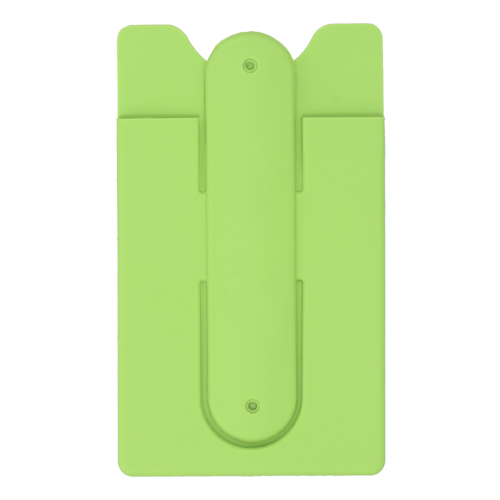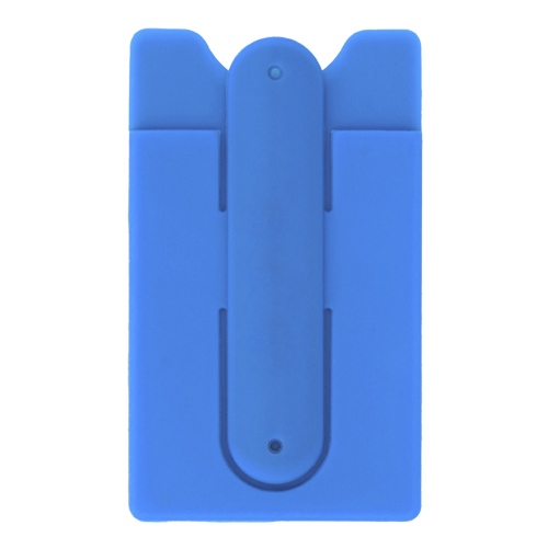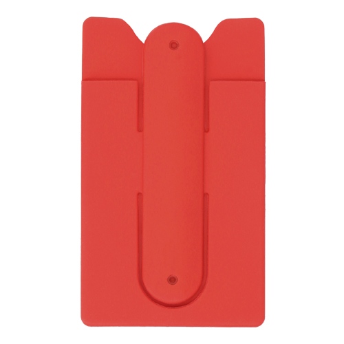 Porta tarjetero de silicón con clip retráctil que sirve como soporte para el celular y enrollar auriculares.