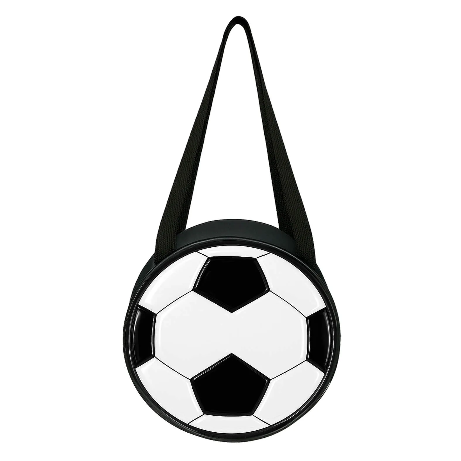 Lonchera con un compartimento interior permeable, cierre, print de balón de soccer y asas.