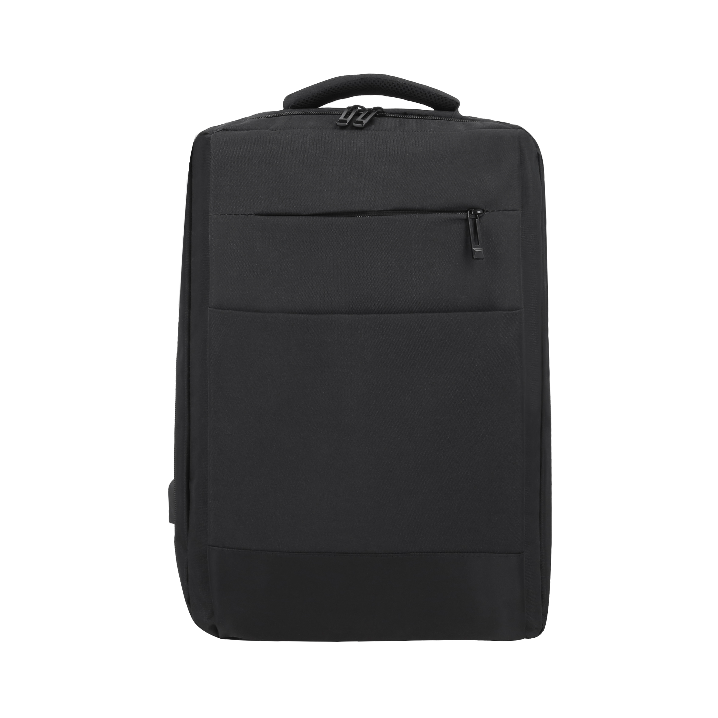 Mochila con abertura 360, 1 compartimento principal con resortes, bolsa frontal, organizador interno y porta llaves. Incluye bolsa de seguridad con porta laptop de 16" y asa.
