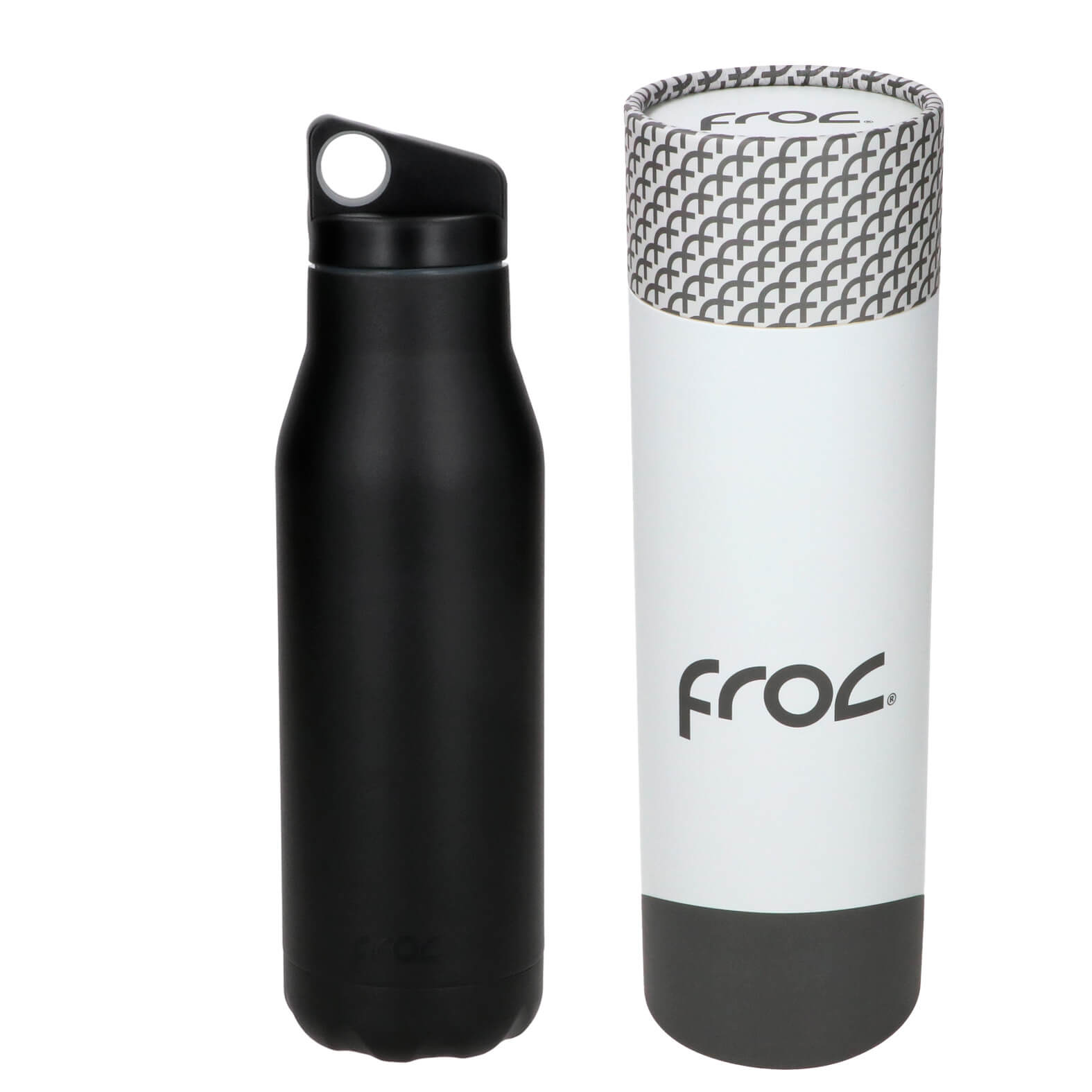 Termo con doble pared de acero inoxidable insulado al vacío y tapa hermética.