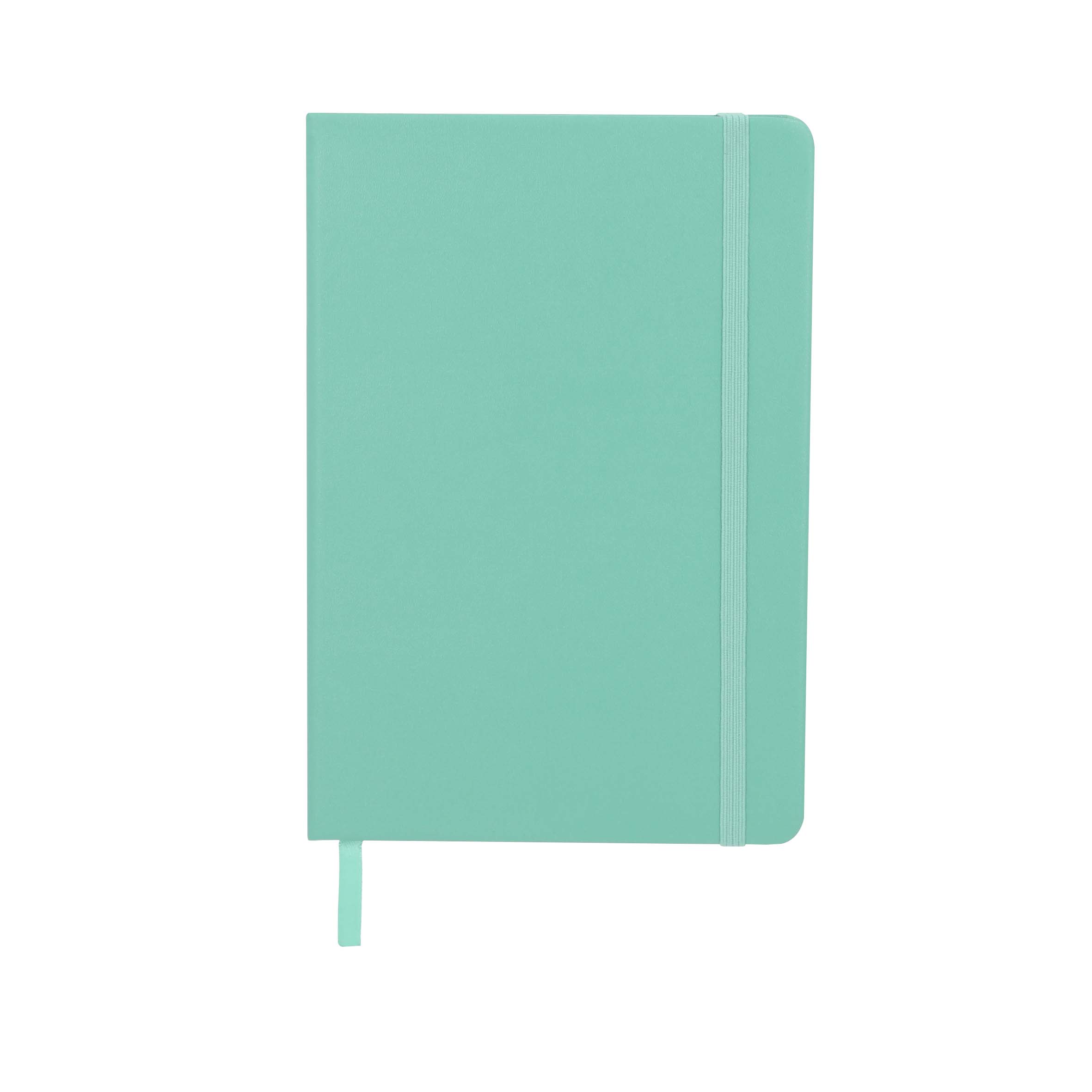 Libreta de poliuretano con 90 hojas rayadas y tonos pastel.