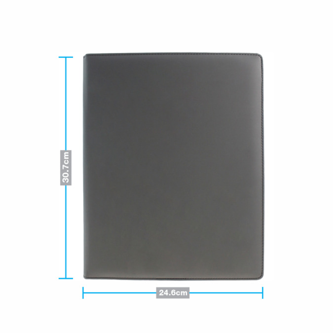 Una pieza perfecta para conferencias y congresos. De cubierta rígida con una suave textura satinada. Incluye un block de 40 hojas punteadas con papel óptico proveniente de bosques sostenibles. Espacio para bolígrafo (no incluido) y 2 prácticos compartimentos porta documentos