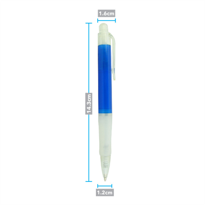 Clasico que no pasa de moda. Boligrafo de plastico con cuerpo translucido. Cuenta con un grip para mayor comodidad en la escritura. Mecanismo retractil. Tinta Negra, con excepcion del boligrafo Colors Milky Azul, con tinta de escritura Azul.