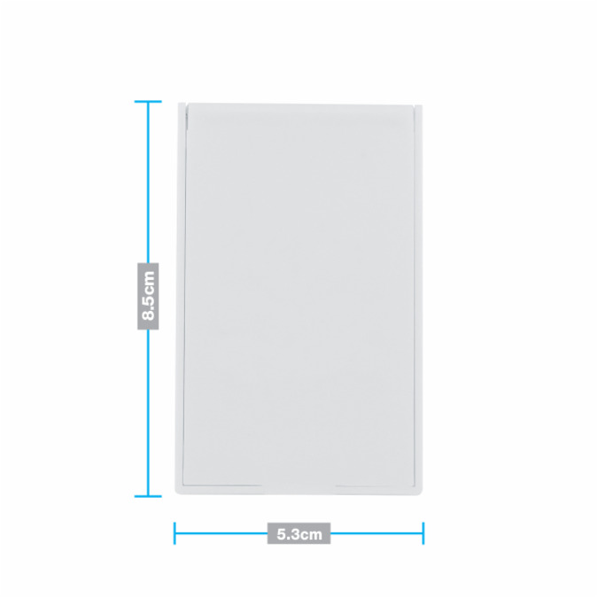 Espejo de bolsillo plegable con cubierta de plastico blanco. Gran area de impresion.
