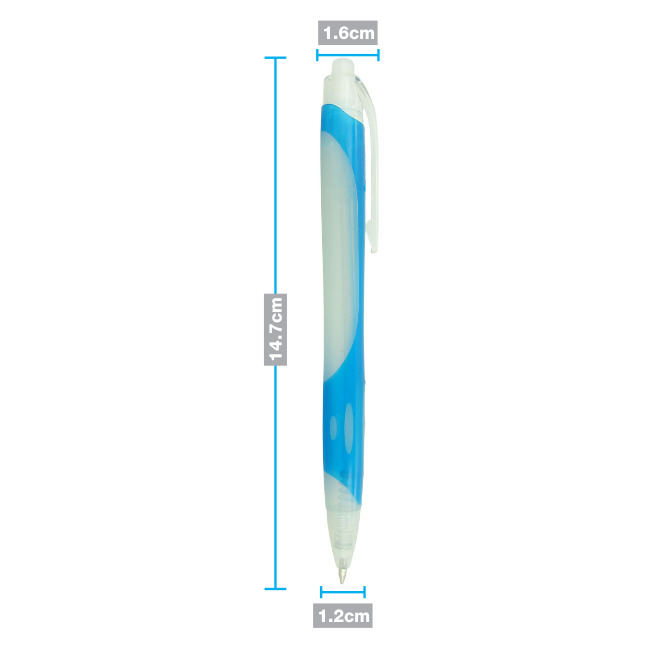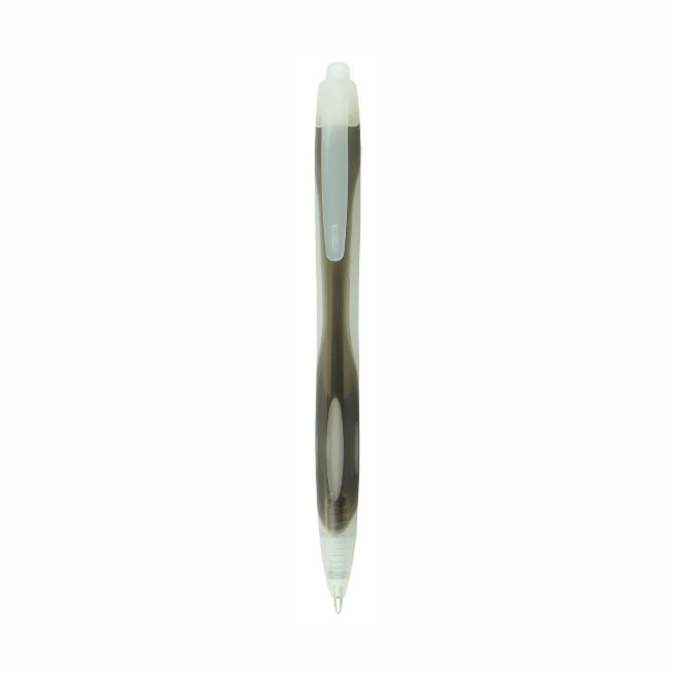 Boligrafo de plastico con cuerpo blanco milky, combinado con detalles de color. Mecanismo retractil. Tinta Negra.