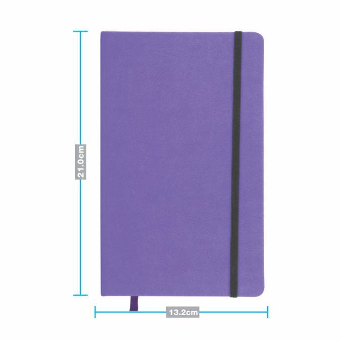 Libreta 80 Hojas Raya, papel optico Silky con certificacion FSC (Proveniente de bosques sustentables) Suave Cubierta aterciopelada. Con sobre de papel en contraportada. Separador de liston mismo color de cubierta. Cierre con elastico. Pegada y cosida.
