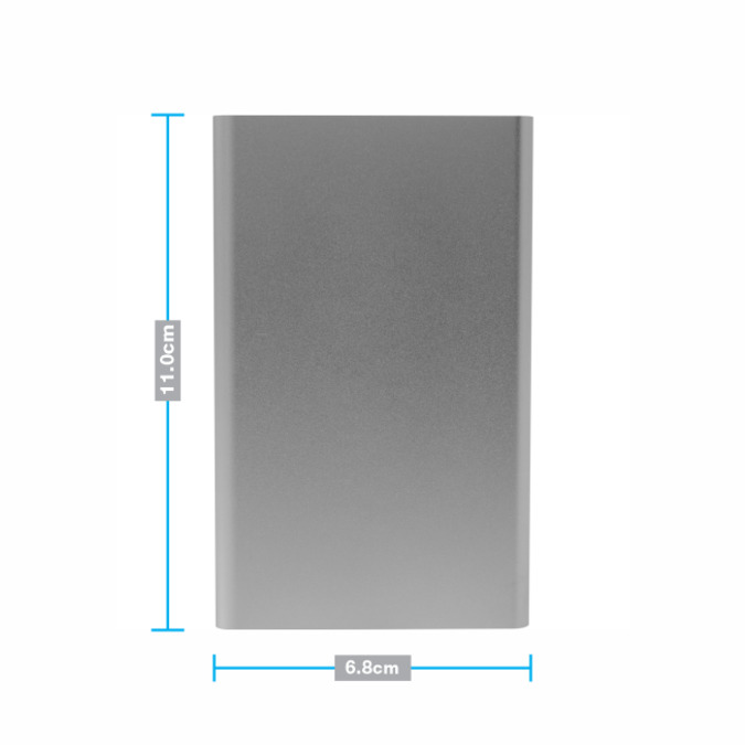 Batería de Aluminio con diseño plano. Capacidad: 3.7V 3000mAh. Permite realizar cargas de alta velocidad cuando no tienes acceso a una corriente eléctrica. Cuenta con protección contra desgaste prematuro, sobrecalentamiento, corto circuito y sobrecarga. Leds indicadores de carga. Incluye cable conector para carga.