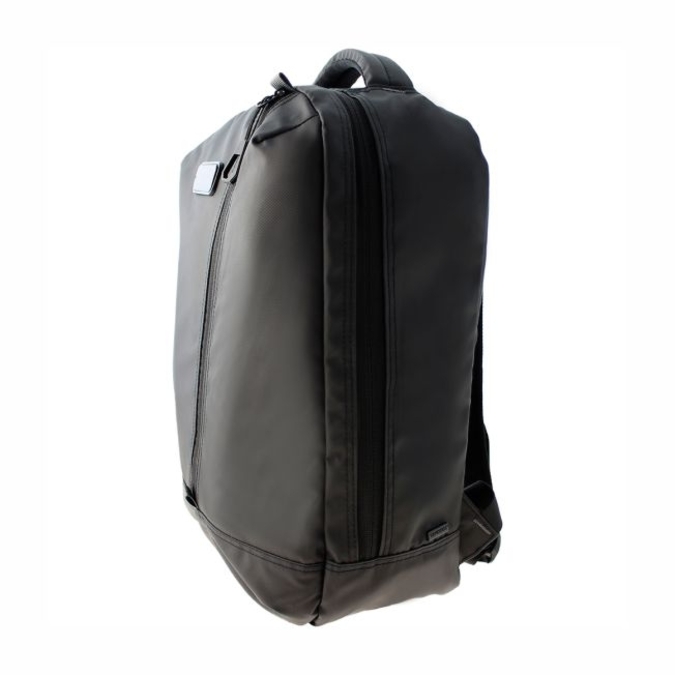 Mochila fabricada en curpiel texturizado repelente al agua. Bolsa frontal con cierre diagonal. Compartimento principal con espacio para laptop de 15.6 y multi organizadores de accesorios (Bolígrafos, tarjetas, etc.). Este espacio cuenta con doble tira cierres con apertura asimétrica. Asas de colgar acolchadas con bandas reflectantes de alta luminosidad, y correa para sujetarse en bastón de maleta. El diseño posterior además de aportar una sensación confortable, crea canales que permiten que el aire circule. Peso: 0.72 Kg. Capacidad: 18.06 Litros.