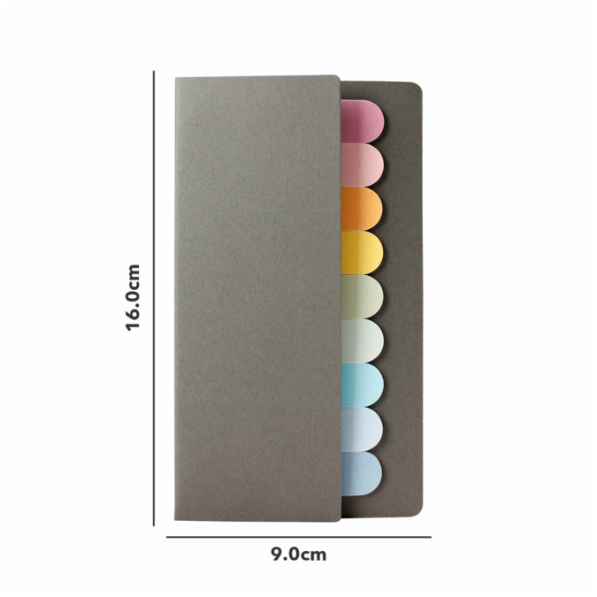 Set de notas adhesivas con agradables siluetas redondeadas. Encuentra 20 notas de papel entintando en cada uno de los 9 diferentes colores, dispuestas en una cartulina gris obscuro texturizada. Gracias a sus suaves tonalidades, tus anotaciones serán el centro de atención sobre su fondo