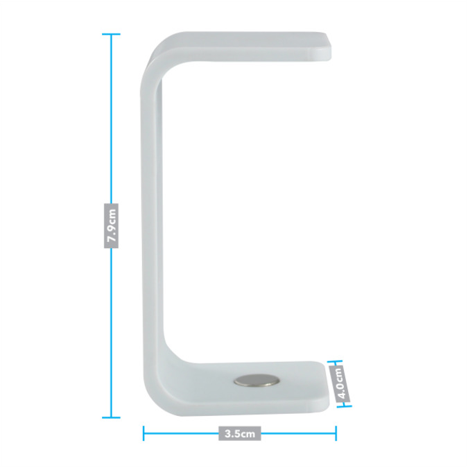 Porta Clips en forma de C plastico blanco. Iman circular en 2 posiciones. Incluye 20 Clips blancos