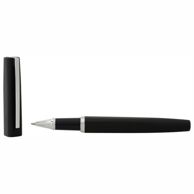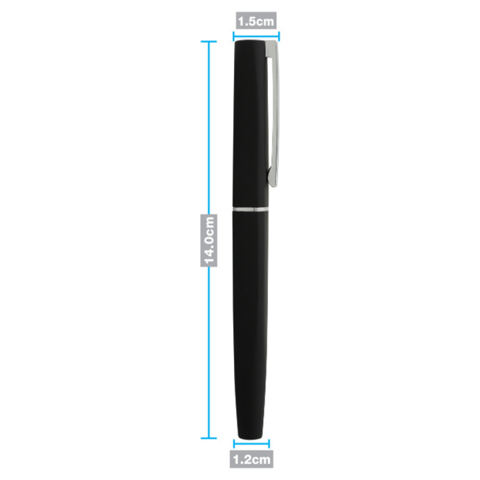 Boligrafo metalico de cuerpo cuadrangular con tapon que cierra a presion. Detalles color cromo. Suave textura ahulada. Escritura de alto desempe