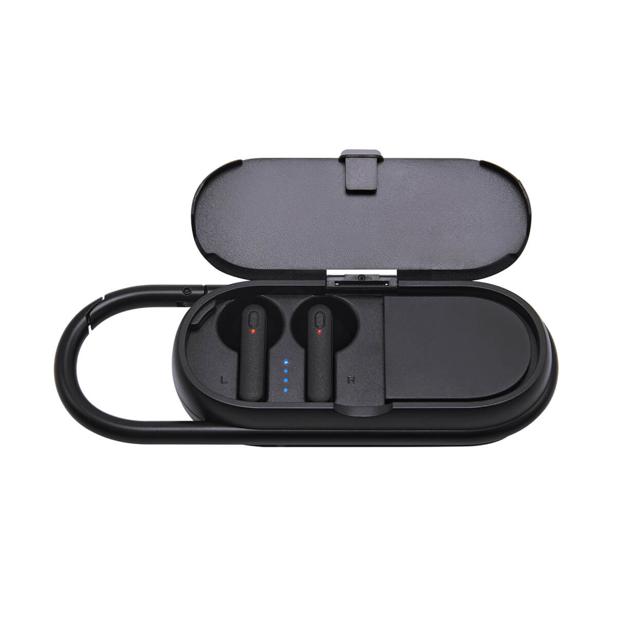 Bocina y audífonos bluetooth con batería recargable, puede utilizarse ambas funciones al mismo tiempo. Audífonos con control de reproducción touch. Incluye cable cargador USB.
