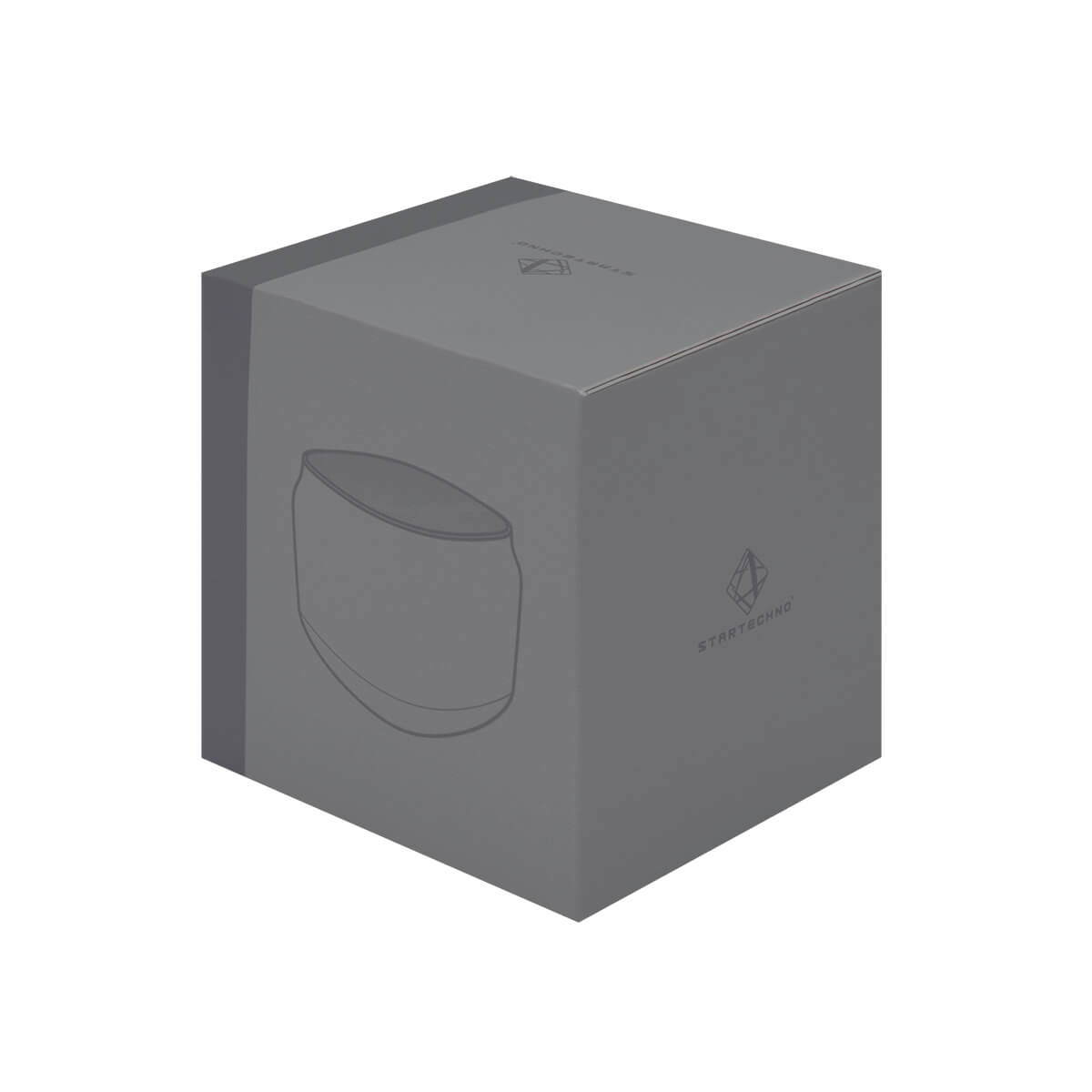 Bocina bluetooth con batería recargable. Tiempo de reproducción de 2 horas aproximadamente. Incluye cable cargador USB.