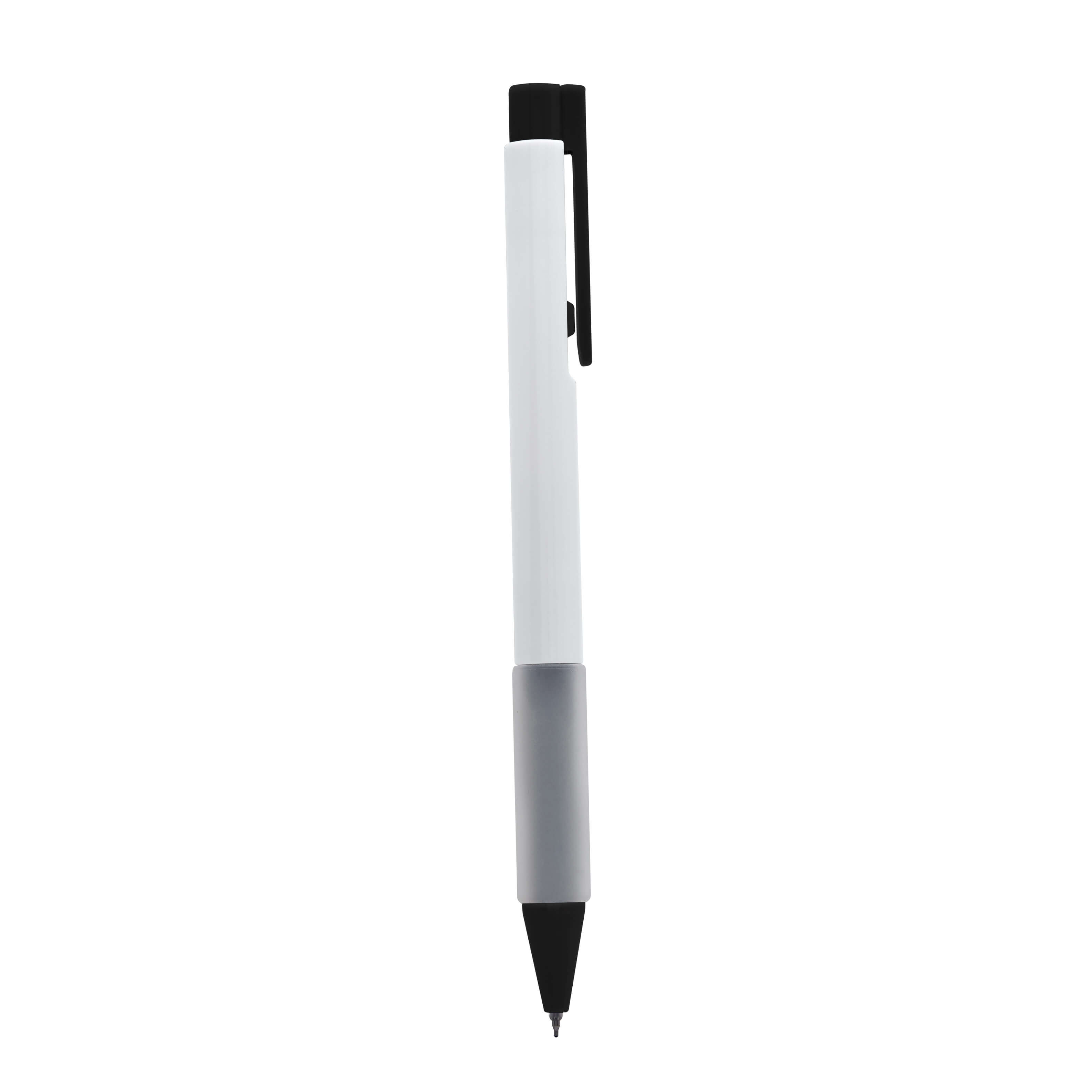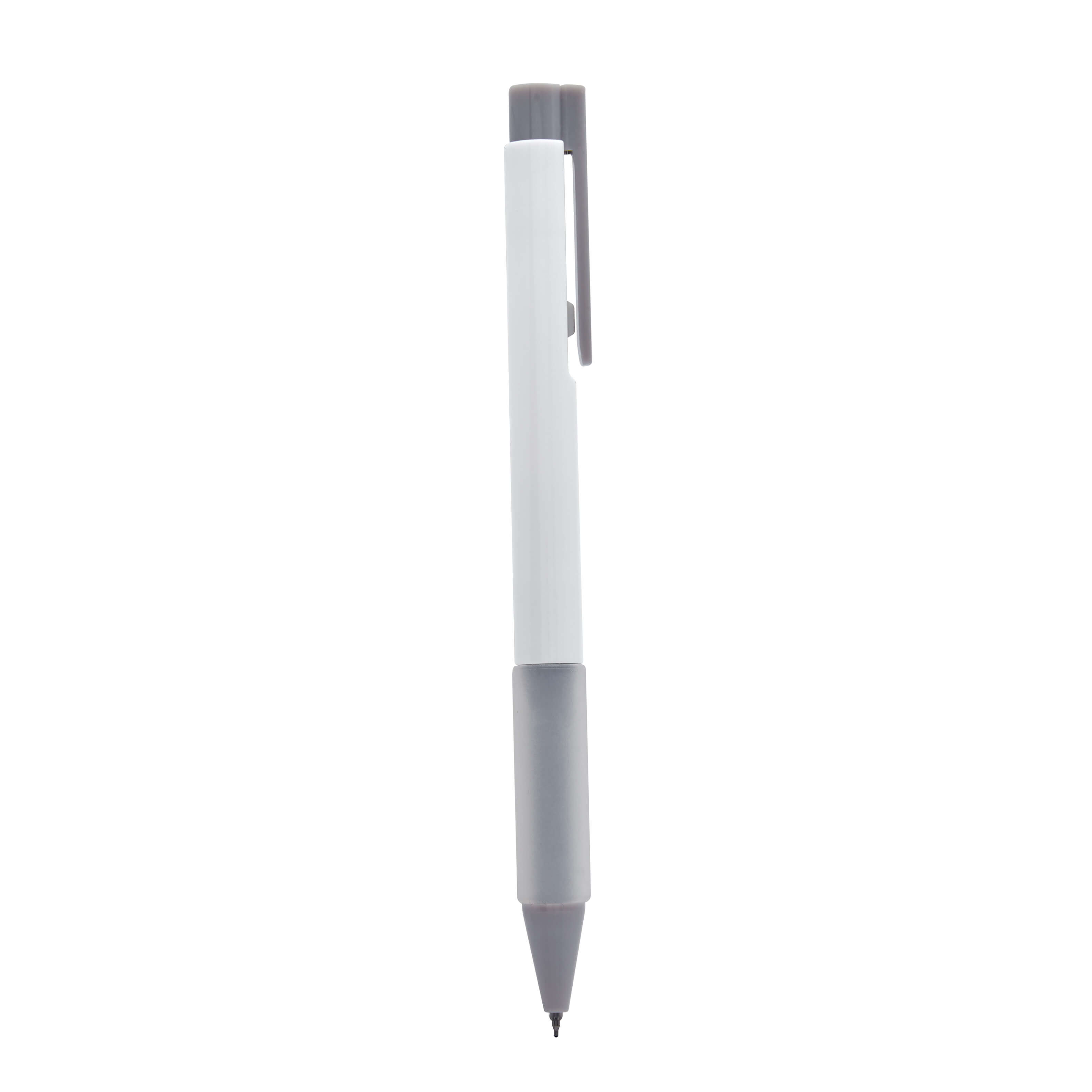 Bolígrafo de tinta de gel con grip de silicón antiderrapante. Mecanismo pulsador.