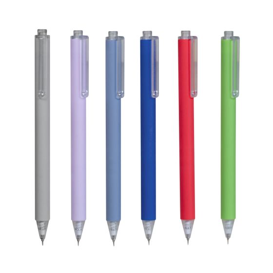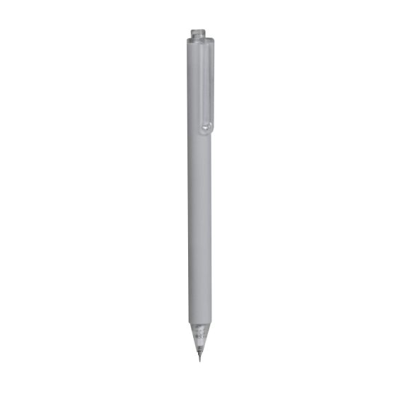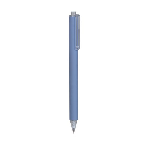 Boligrafo de punto fino con terminado tipo rubber. Mecanismo pulsador.