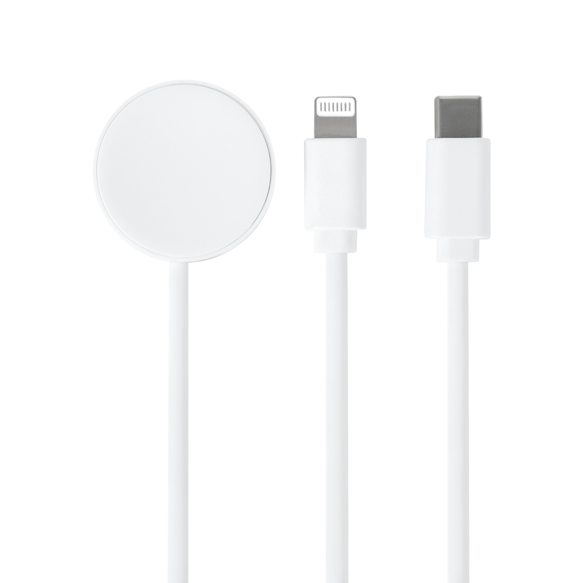 Cable cargador 5 en 1. Incluye conector de entrada USB y tipo C, conector de salida lightning (8 pines), micro USB, tipo C y cargador inalambrico para reloj inteligente (compatible con dispositivos que cuenten con tecnologia de carga inalambrica). Este cable multifuncion, permite cargar varios dispositivos simultanemanete, lo que te ayuda a ahorrar tiempo y espacio. No admite la transferencia de datos.