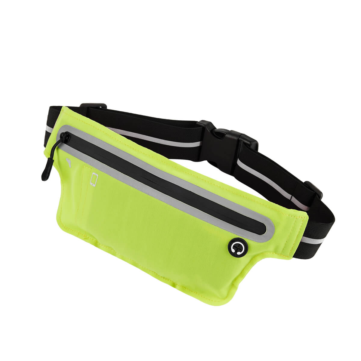 Cangurera deportiva ligera. Incluye interior plastificado. Ofrece resistencia al agua y comodidad en todo momento. Su compartimento con cierre y puller con correa permite guardar lo esencial, mientras que la salida para audifonos con cable te acompaña con musica en cada paso. La banda elastica con broche de plastico se adapta facilmente al cuerpo, y sus detalles reflejantes en cinturon y cuerpo brindan visibilidad extra en condiciones de poca luz.