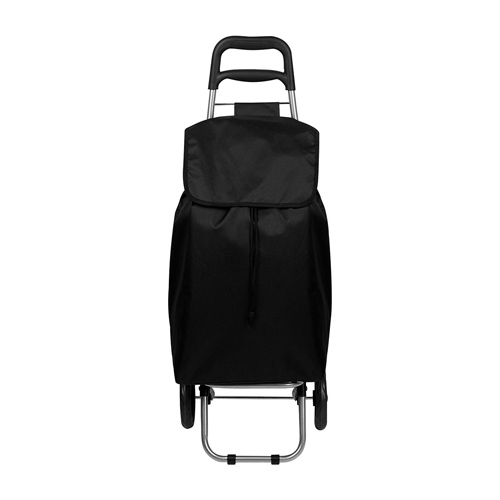Bolsa para supermercado con jareta y solapa, bolsa posterior con cierre, estructura de metal, base para sostenerse, agarradera de pl?stico y llantas. Desmontable con velcro en la parte posterior.