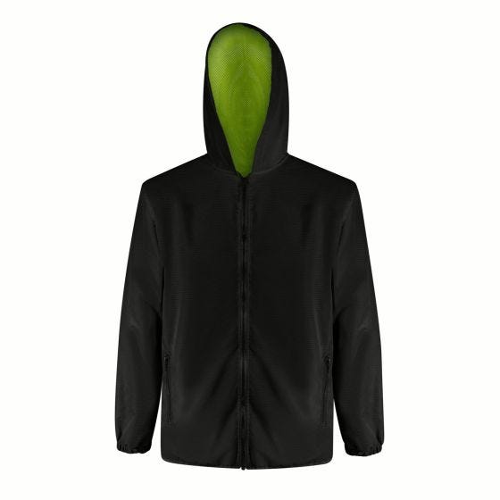 Chamarra deportiva con dos bolsillos frontales, gorro y elasticos en el area de las muñecas para un mejor ajuste. Forro interno hecho con material transpirable y comodo. Destacan los tonos fluorescentes que agregan un aspecto moderno a su diseño..