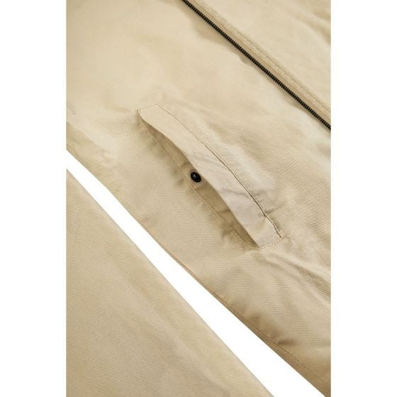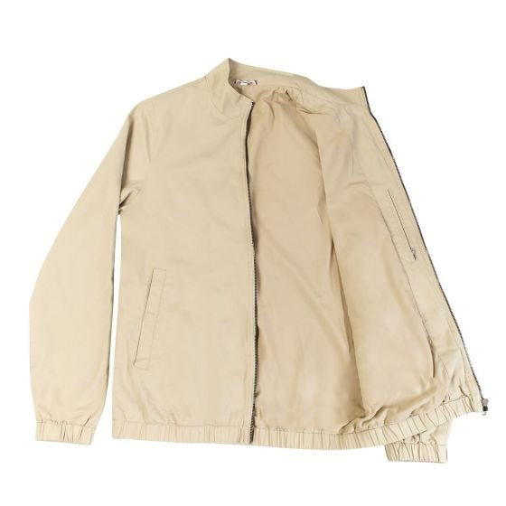 Chamarra casual. Cuenta con cierre metálico y elástico para ajuste en muñecas y cintura. Fabricada con material tipo gabardina, exterior 100% algodón y forro 95% poliéster - 5% algodón. Incluye 2 bolsillos exteriores con botón metálico y 1 bolsillo invisible en la parte interna.