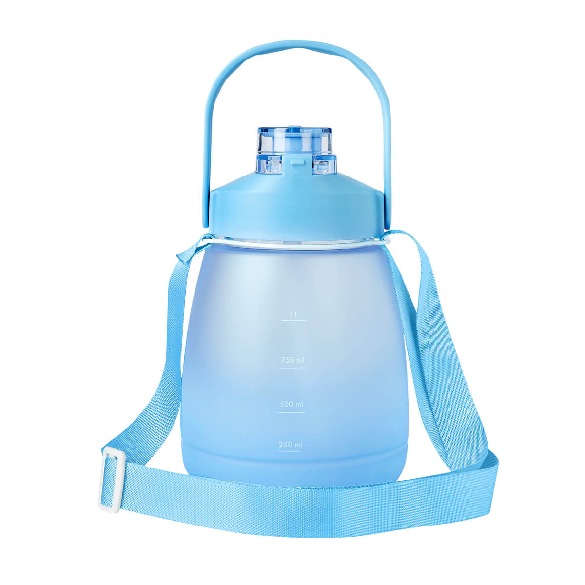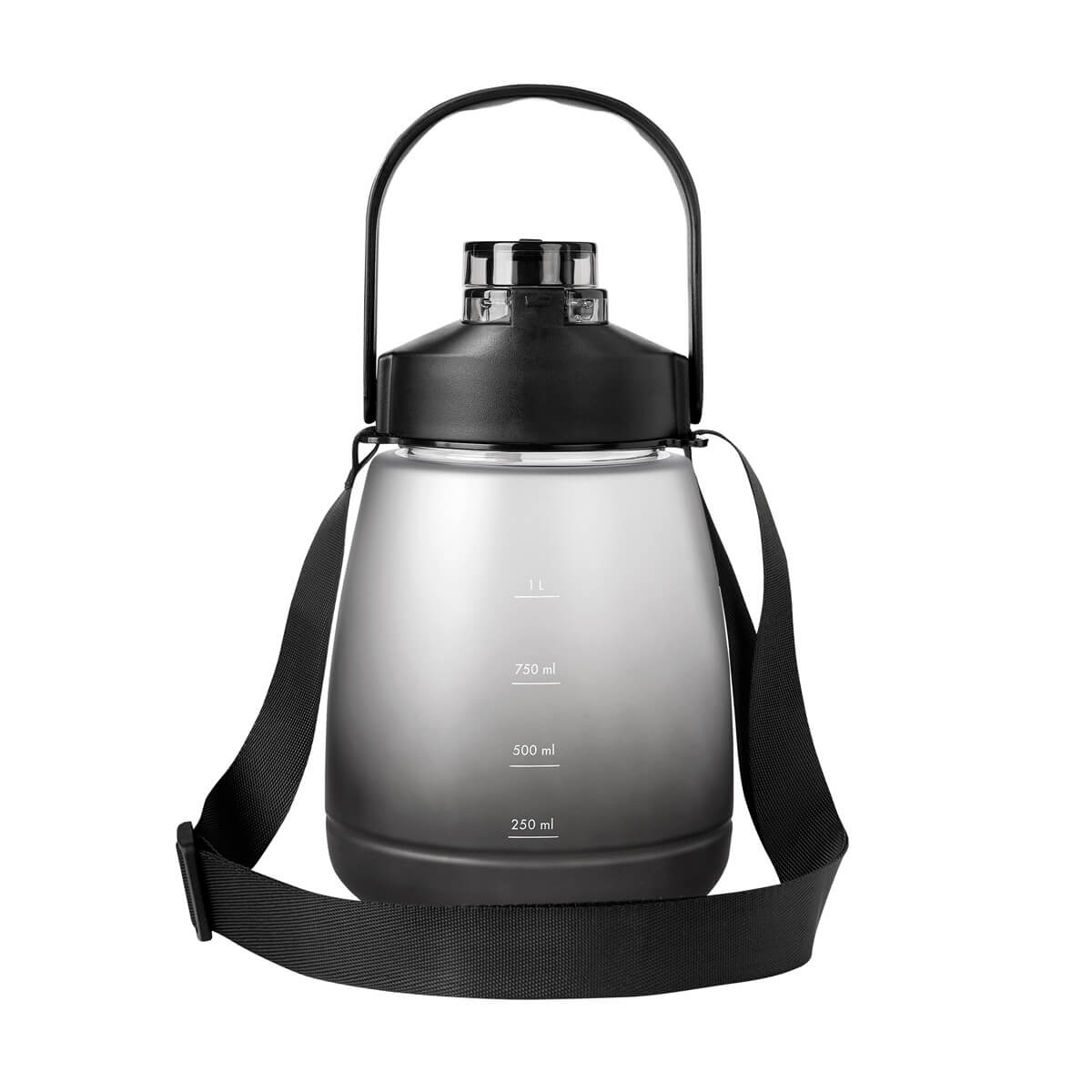 Tapa de plastico con cierre de rosca y boquilla, sobretapa push con boton de seguridad y asa plegable. Incluye asa de poliester para transportarlo facilmente. Cuerpo con terminado rubber que lo hace suave al tacto. Incluye indicador de mililitros para motivar y controlar tus habitos de hidratacion. Incluye popote y caja individual.