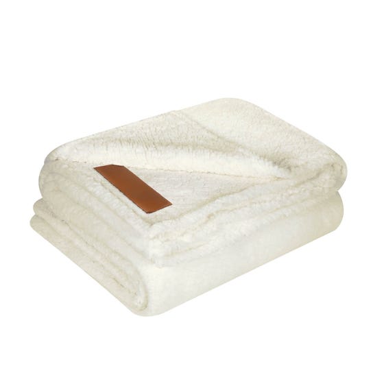 Frazada con textura tipo borrego. Acogedora y comoda, la cual proporciona una sensacion calida y suave al tacto.