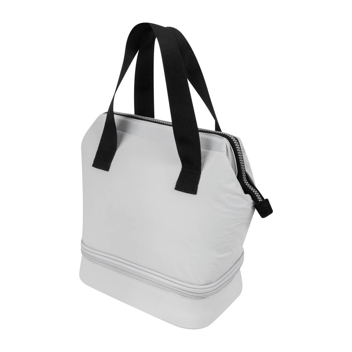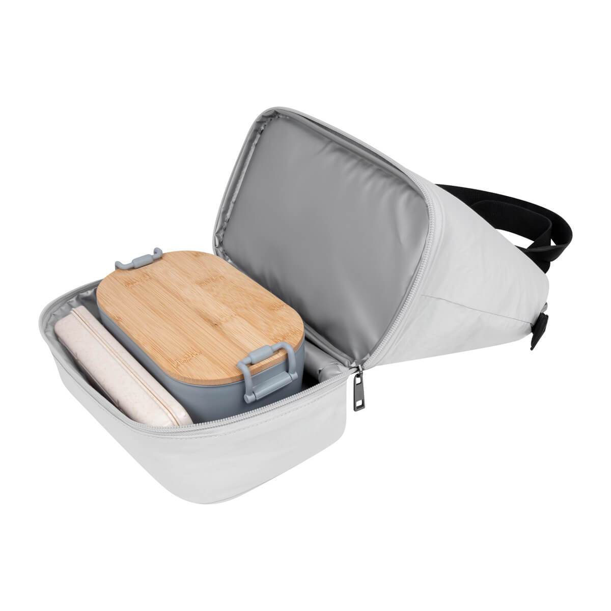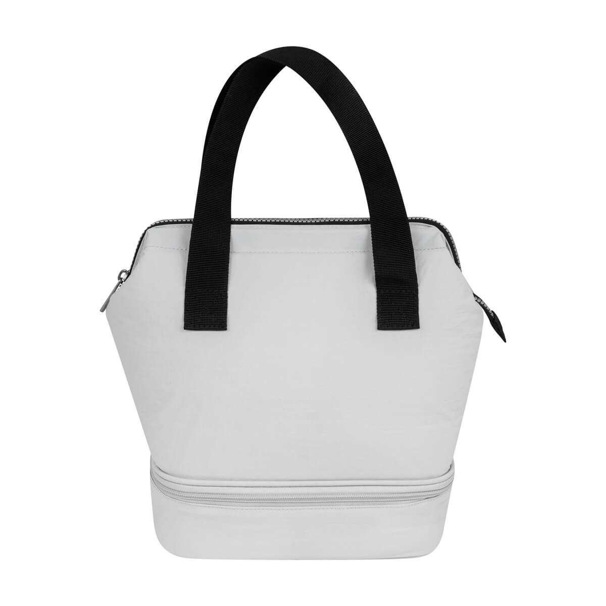 Lonchera con interior plastificado y marco interno metalico que le da mayor soporte y estabilidad. Compartimento inferior plastificado, ideal para almacenar cubiertos o alimentos compactos. Cuenta con un asa de mano de tela para transportar facilmente. Perfecta para mantener los alimentos organizados y frescos. Capacidad 6 latas.