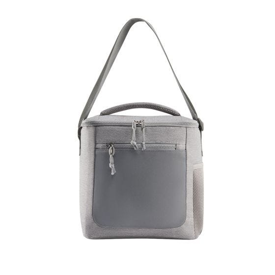 Hielera con interior plastificado impermeable. Bolsa principal y bolsa frontal con cierre. Bolsillo lateral de red. Incluye asa acolchada y correa larga ajustable. Capacidad para 24 latas.