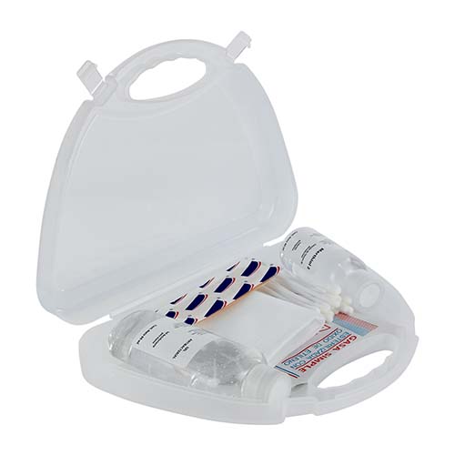 KIT ANTIBACTERIAL(Incluye gel antibacterial de 60 ml., 1 cubre boca, 2 gasas, 3 curitas, 20 cotonetes, 1 mertodol de 40 ml. y estuche de plástico.)