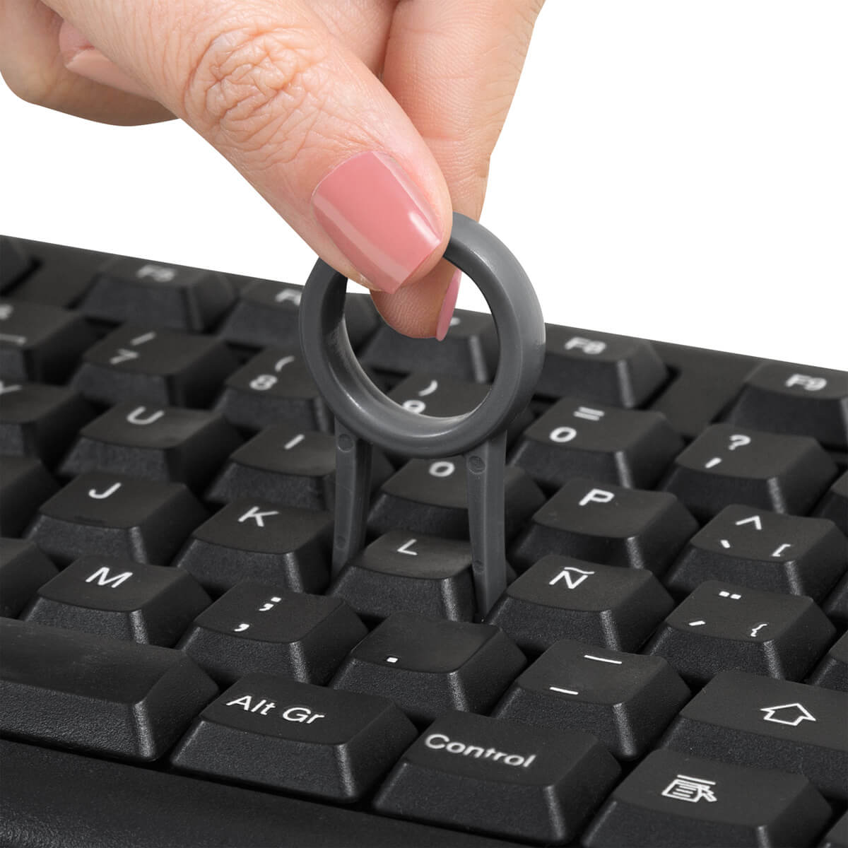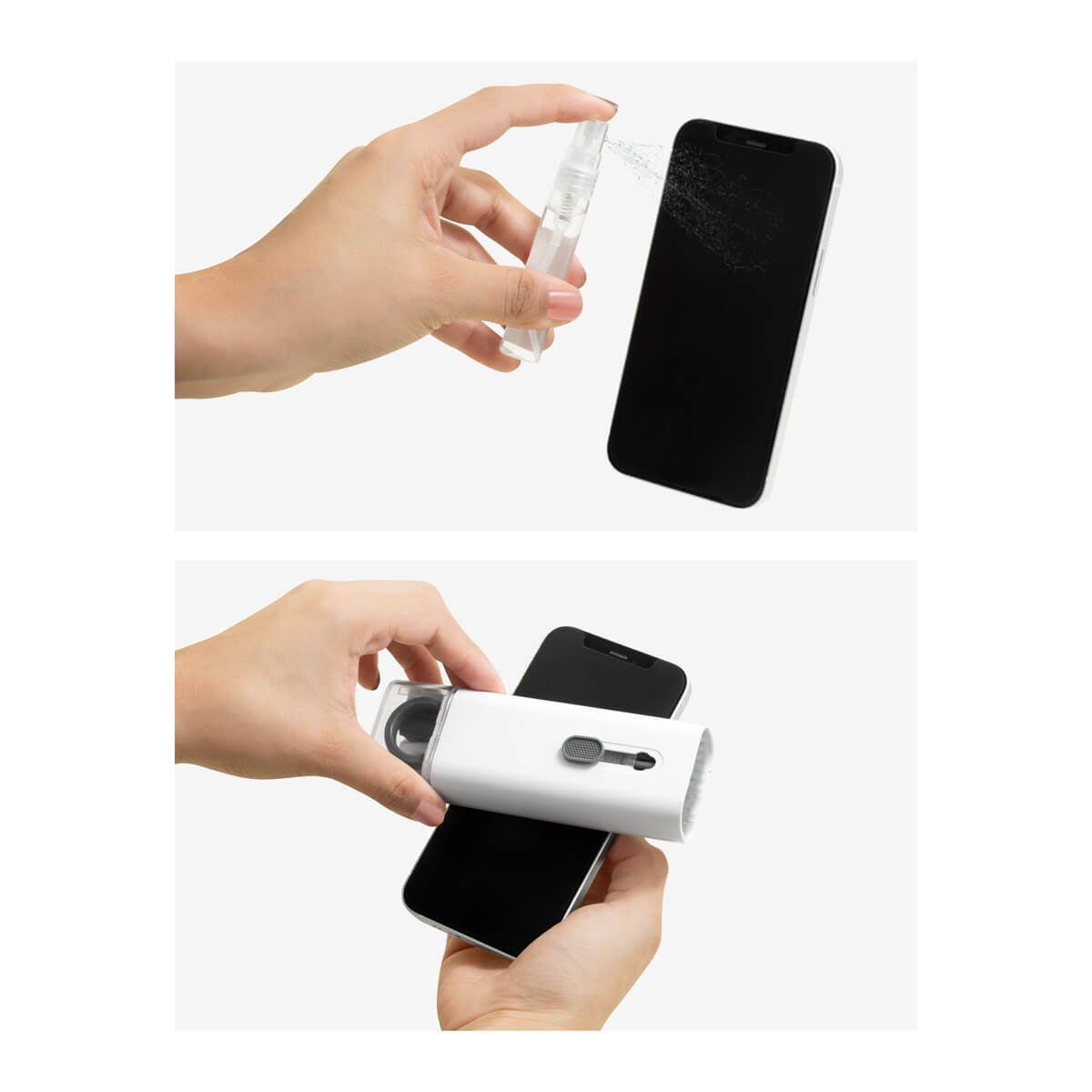 Kit de limpieza para electronicos, gadgets, celulares y mas. Incluye 5 herramientas basicas para mantener tus accesorios favoritos libres de suciedad. Cepillo plegable 3 en 1 para limpiar auriculares. Equipado con punta de silicon, cepillo de esponja y mini cepillo. Mini atomizador de 5ml con liquido limpiador de pantallas. Removedor de teclas (para teclado mecanico). Cepillo retractil para limpiar teclados o superficies planas. Limpiador de pantallas y caja individual.