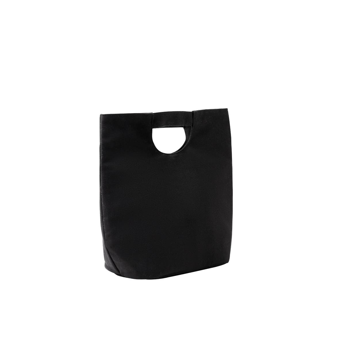 Lonchera de mano con fuelle en la base. Incluye boche de imán para cerrar. Asas con orificio de agarre.