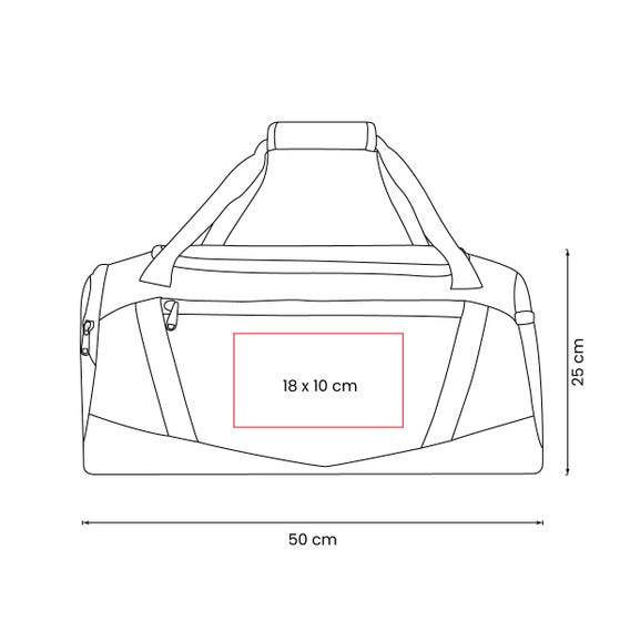 Maleta deportiva equipada con bolsa principal y una adicional en la parte frontal, ambas con cierre. Ademas, cuenta con un compartimento lateral para calzado yun bolsillo lateral de malla. Incluye correa ajustable para hombro y asas de agarre superior. Las costuras frontales permiten colgar objetos en ellas.