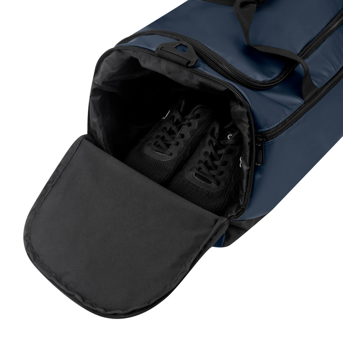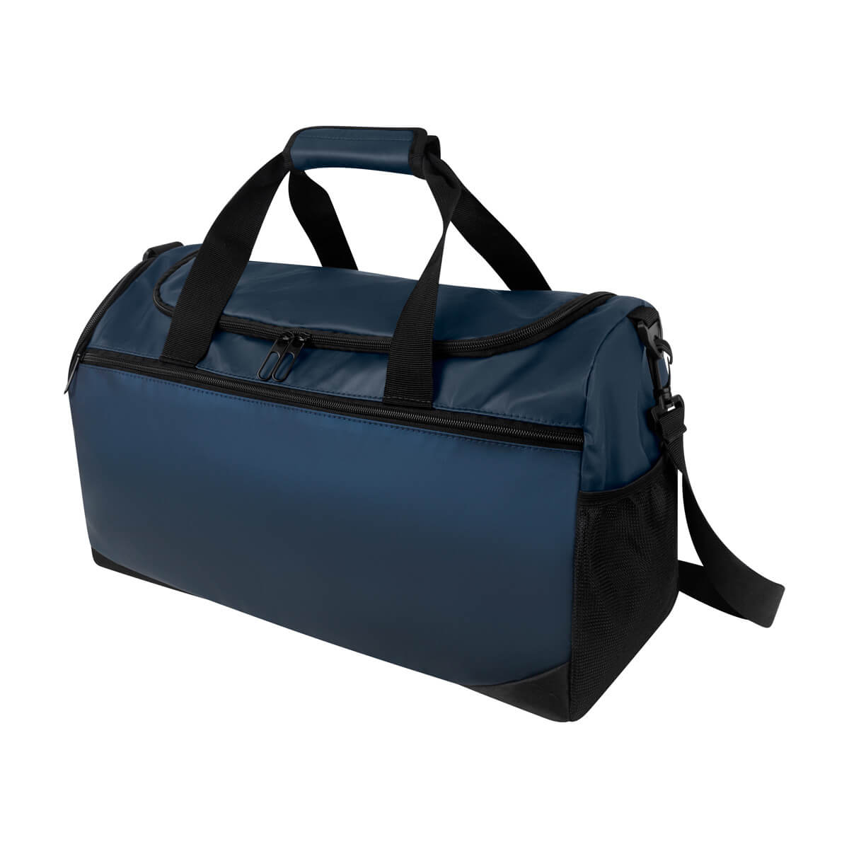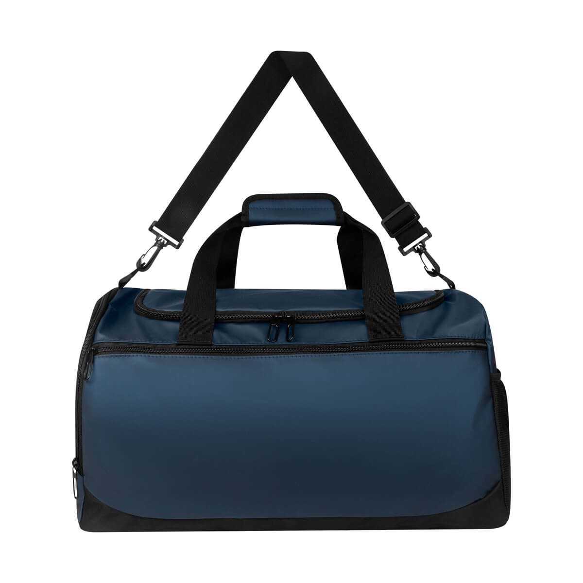 Practica maleta con amplio compartimento principal y un bolsillo frontal con cierre. Cuenta con un compartimento lateral para calzado y un bolsillo lateral de malla para objetos pequenos. Incluye correa ajustable para hombro con broches de plastico removibles y asas de agarre superior. Perfecta para uso deportivo o viajes cortos