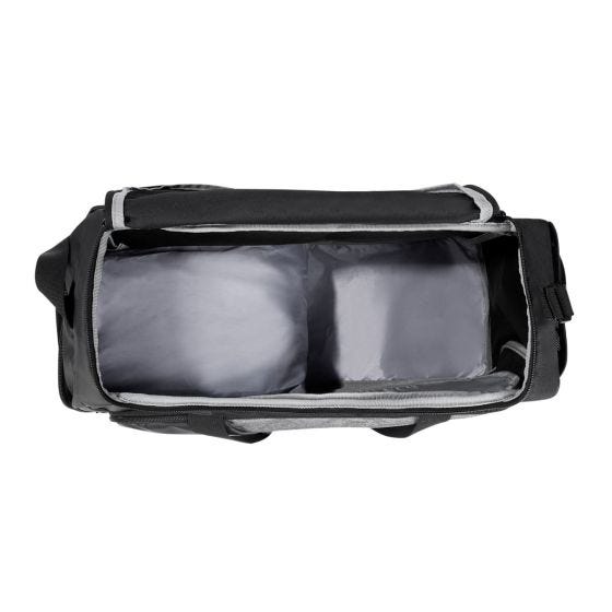 Maleta deportiva con bolsa principal y frontal con cierre que combina funcionalidad y estilo en un solo producto. Incluye accesorio para colgar llaves, compartimento para separar tu calzado, bolsillo lateral de malla, asas de mano y correa para hombro ajustable.