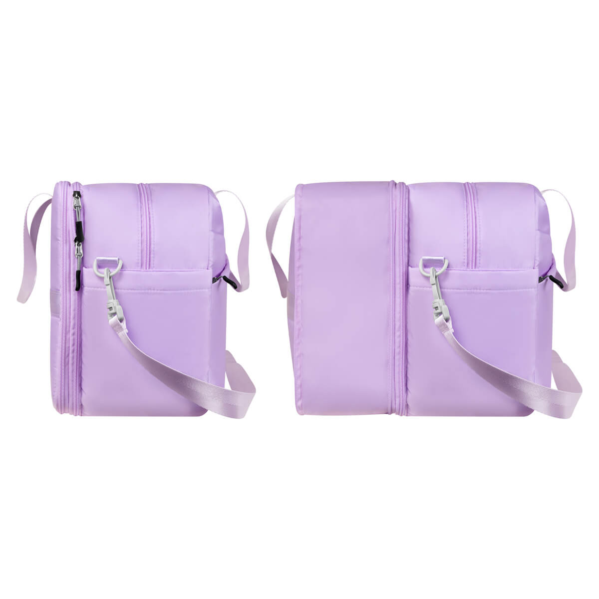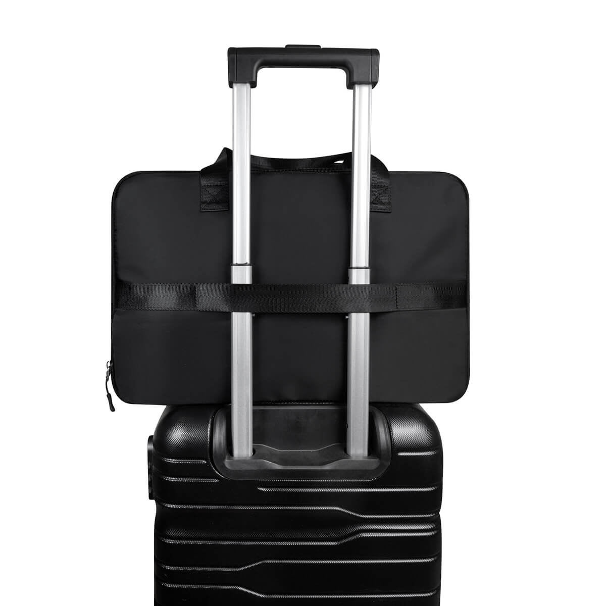Maleta con compartimento expandible para ampliar su capacidad segun tus necesidades. Incluye un compartimento principal con bolsillo para llevar objetos pequenos. Un segundo compartimento con cierre para expandir o contraer y broche elastico para mantener tu ropa y accesorios fijos en todo momento. Agrega tambien un bolsillo frontal con cierre y dos bolsillos laterales. Su correa para hombro es ajustable y removible, gracias a sus broches de plastico. En la parte posterior incluye banda para llevar en trolley.
