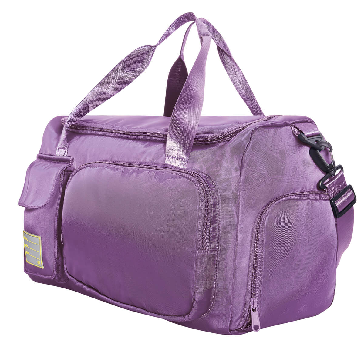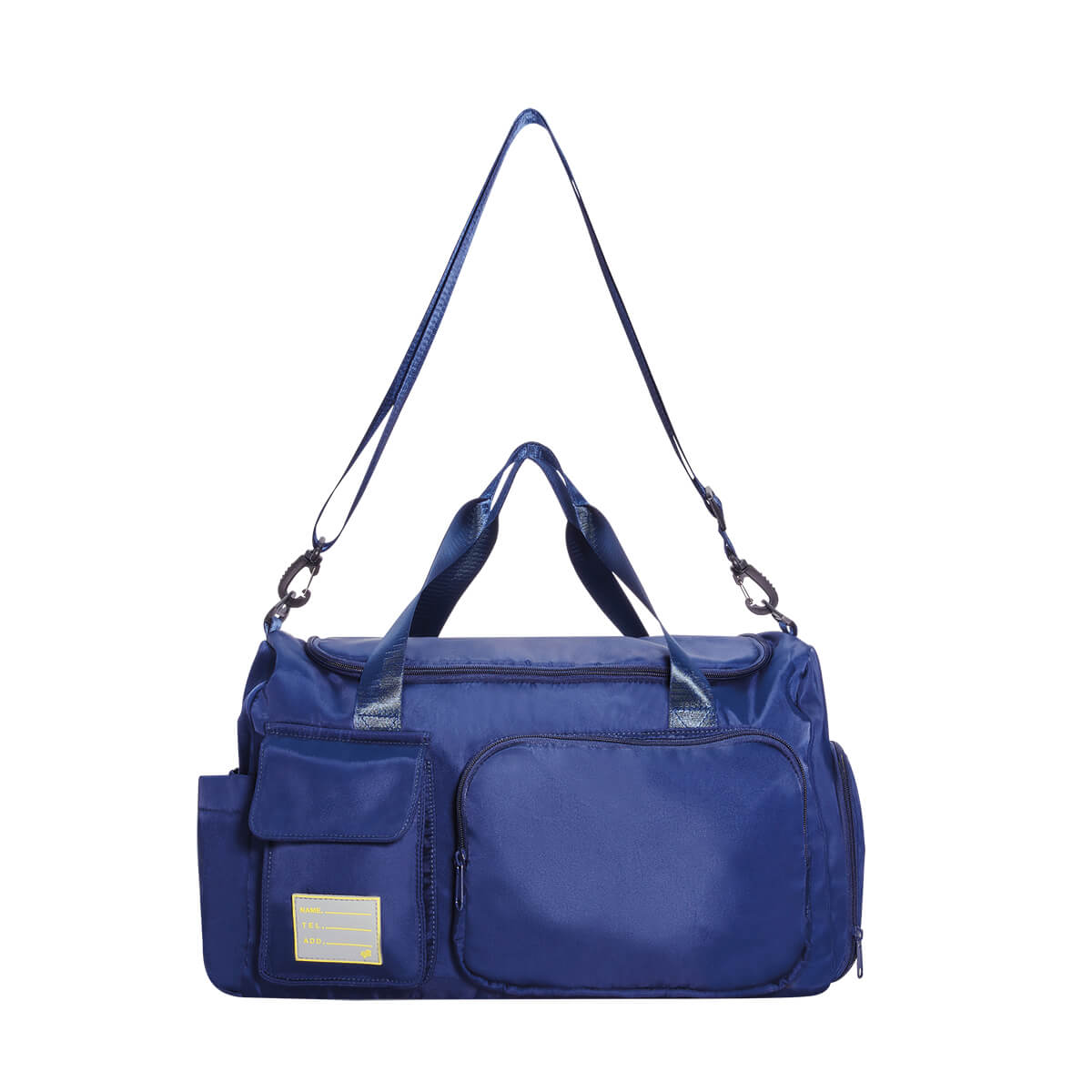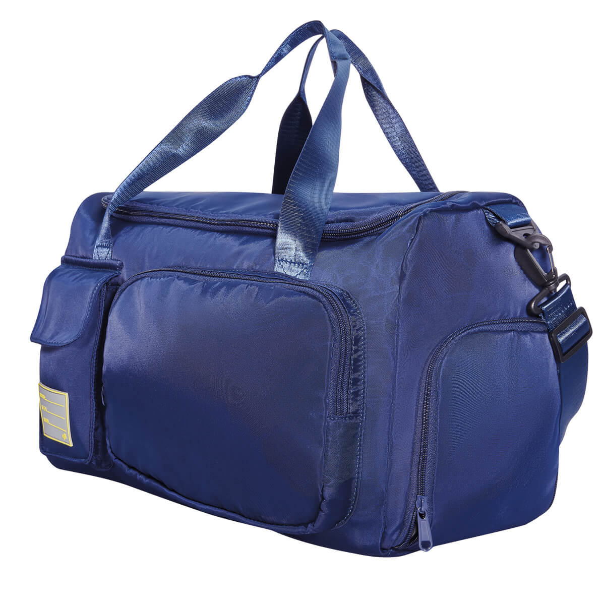 Bolsa principal con cierre y bolsa interior resistente al agua. Bolsillo lateral izquierdo con cierre de velcro y compartimento lateral para zapatos. Doble bolsa frontal. Incluye aditamento especial trasero para poner en trolley y asa ajustable para hombro con broche removible.