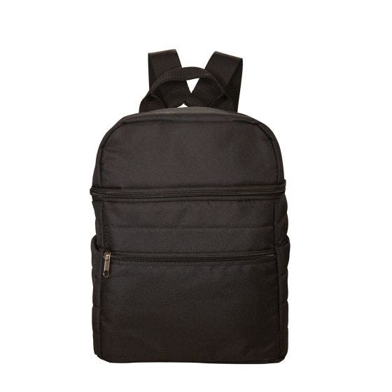 Lonchera tipo mochila con asas, su diseño versátil permite llevarla como una mochila, facilitando su transporte. Cuenta con un bolsillo principal con cierre, que permite guardar los alimentos de manera segura y organizada. Incluye un bolsillo frontal con cierre, ideal para llevar utensilios o artículos pequeños. También cuenta con dos bolsillos laterales, adecuados para llevar botellas de agua u otros objetos de acceso rápido.