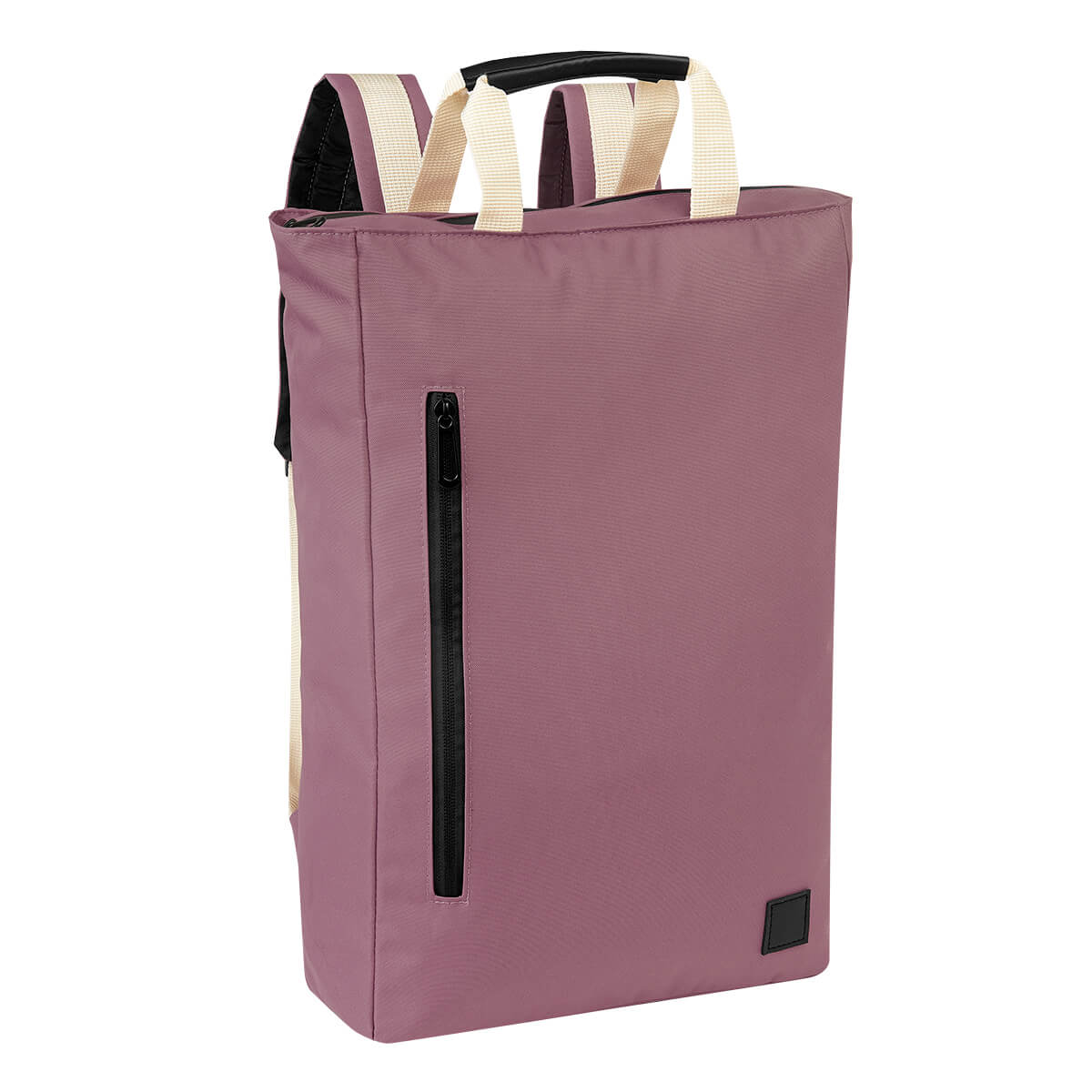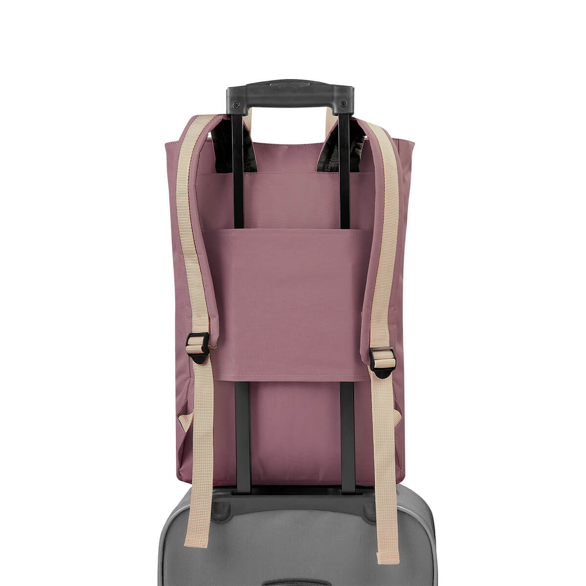 Mochila estilo casual. Compartimento principal con cierre y separador para laptop de hasta 14'. En la parte frontal dispone de un bolsillo con cierre vertical que lo hace funcional para llevar accesorios mas pequeños y ademas le aporta un toque de diseño. Incluye dos asas superiores con recubrimiento de curpiel para mayor comodidad en su transportacion. Cuenta con asas ajustables para hombro y banda trasera para utilizar en trolley, tambien funciona para guardar sus asas y utilizar como bolsa.