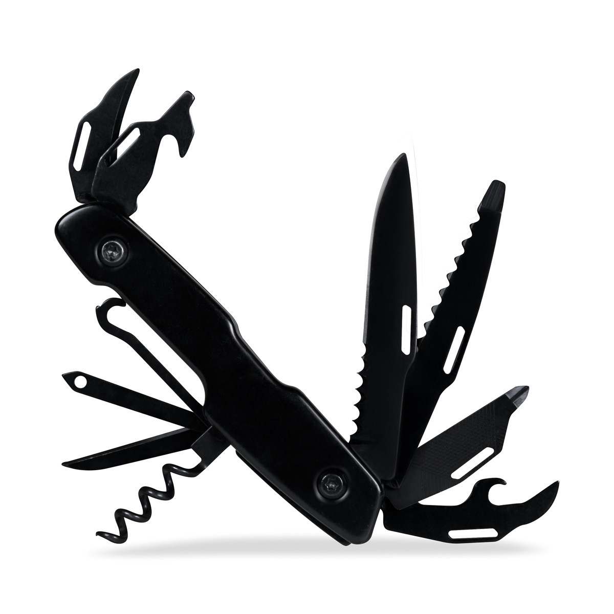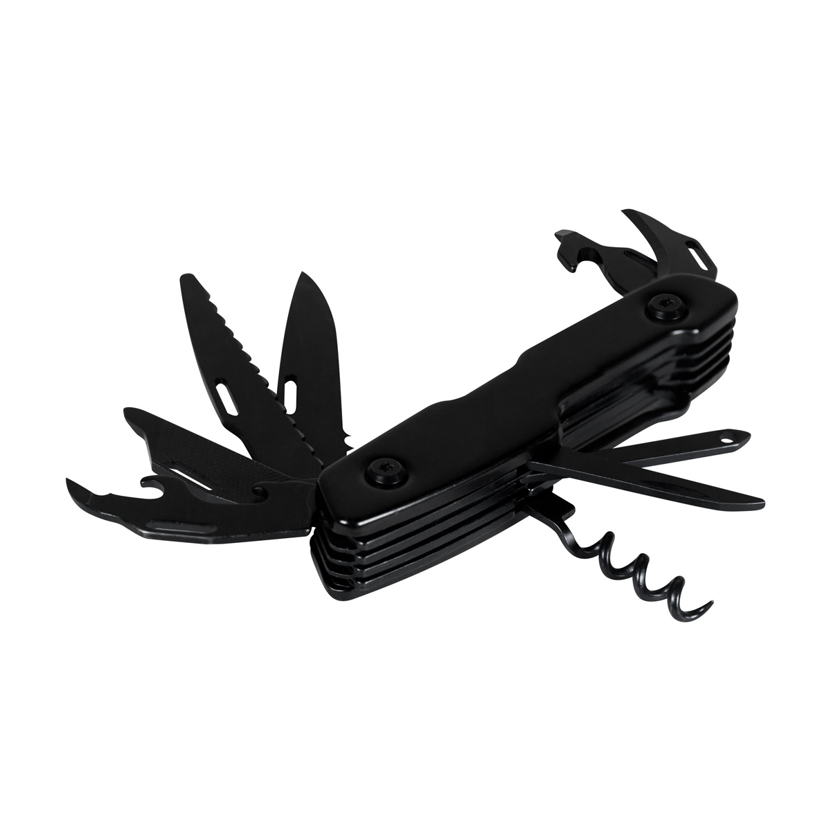 Navaja metalica con 12 funciones. Incluye 1 navaja, 1 destornillador, 1 destornillador plano, 1 destornillador pequeño, 1 abrelatas, 1 lima, 1 sacacorchos, 1 guia de hilo, 1 punzon para cuero, 1 cortador de cajas, 1 destapador y 1 cuchilla pequeña. Incluye caja individual.