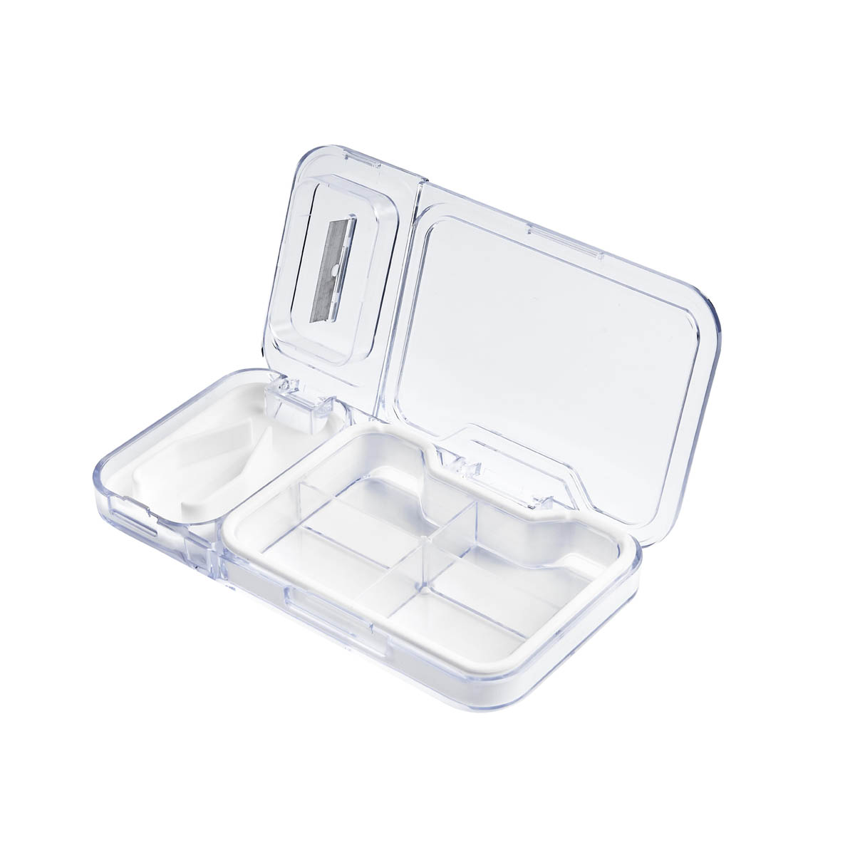 Pastillero con cortador integrado que permite dividir tus pastillas de manera segura y precisa. Ademas, sus cuatro compartimentos ofrecen un espacio optimo para organizar tus dosis de manera sencilla y eficiente. Compacto y portatil, es ideal para llevar en el bolso, en la oficina o durante tus viajes.